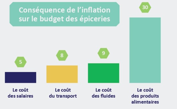 L’inflation touche de plein fouet le secteur de l’alimentation : que ce soit sur le coût du carburant pour la logistique, le coût de l’énergie pour le stockage en chambre froide, et donc sur le prix d’achat des produits. Les épiceries condensent toutes ces difficultés et plus de 50 % d’entre elles ont une inquiétude particulière concernant le budget 2023. D’ailleurs, 20 % déclarent avoir des problèmes de trésorerie.